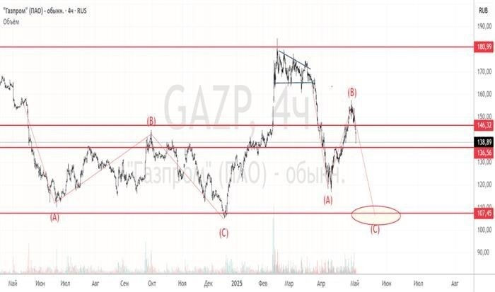Общий тренд остается нейтральным, цена колеблется вокруг ключевых скользящих средних. Однако потенциальным «бычьим» сигналом является увеличение объема при восходящем движении, что свидетельствует об институциональном интересе. ПАО «Газпром» демонстрирует признаки силы, особенно учитывая его устойчивость на рынках высокодоходных облигаций. Учитывая сезонность деятельности энергетических компаний и влияние государственной политики, квартальные отчеты часто отражают значительную волатильность. На данный момент тенденция остается относительно стабильной с периодическими коррекциями.